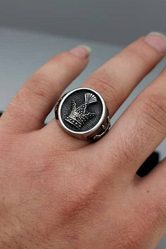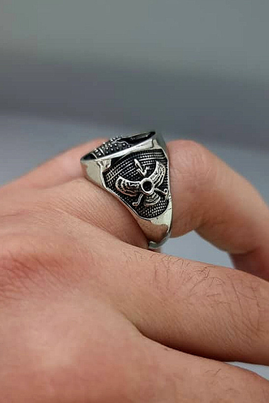انگشتر استیل طرح تاج که در بغل انگشتر طرح زیبای فروهر وجود دارد