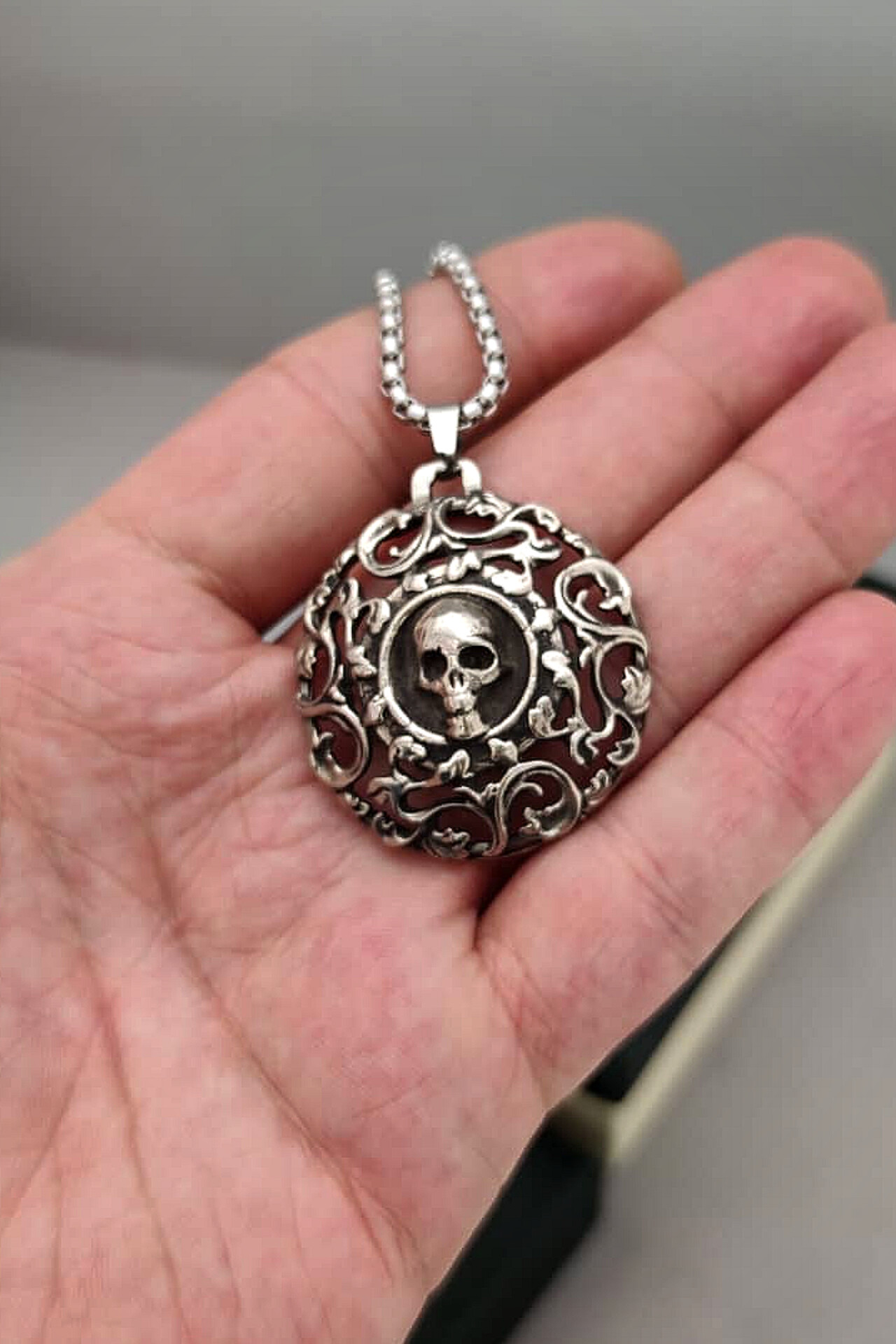 گردنبند اسکلت پر نقش و نگار یه زنجیر پلاک بسیار خاص و جذاب بدون مشابه در بازار استیل رنگ ثابت و دارای ضمانت