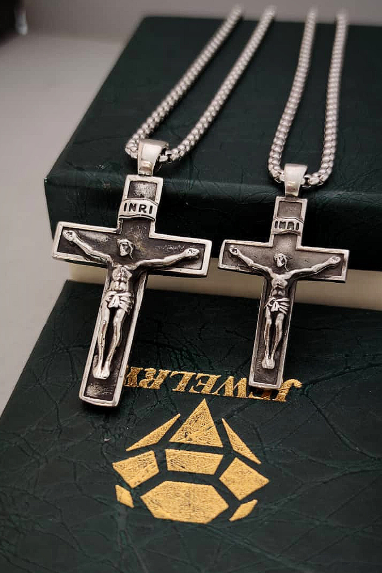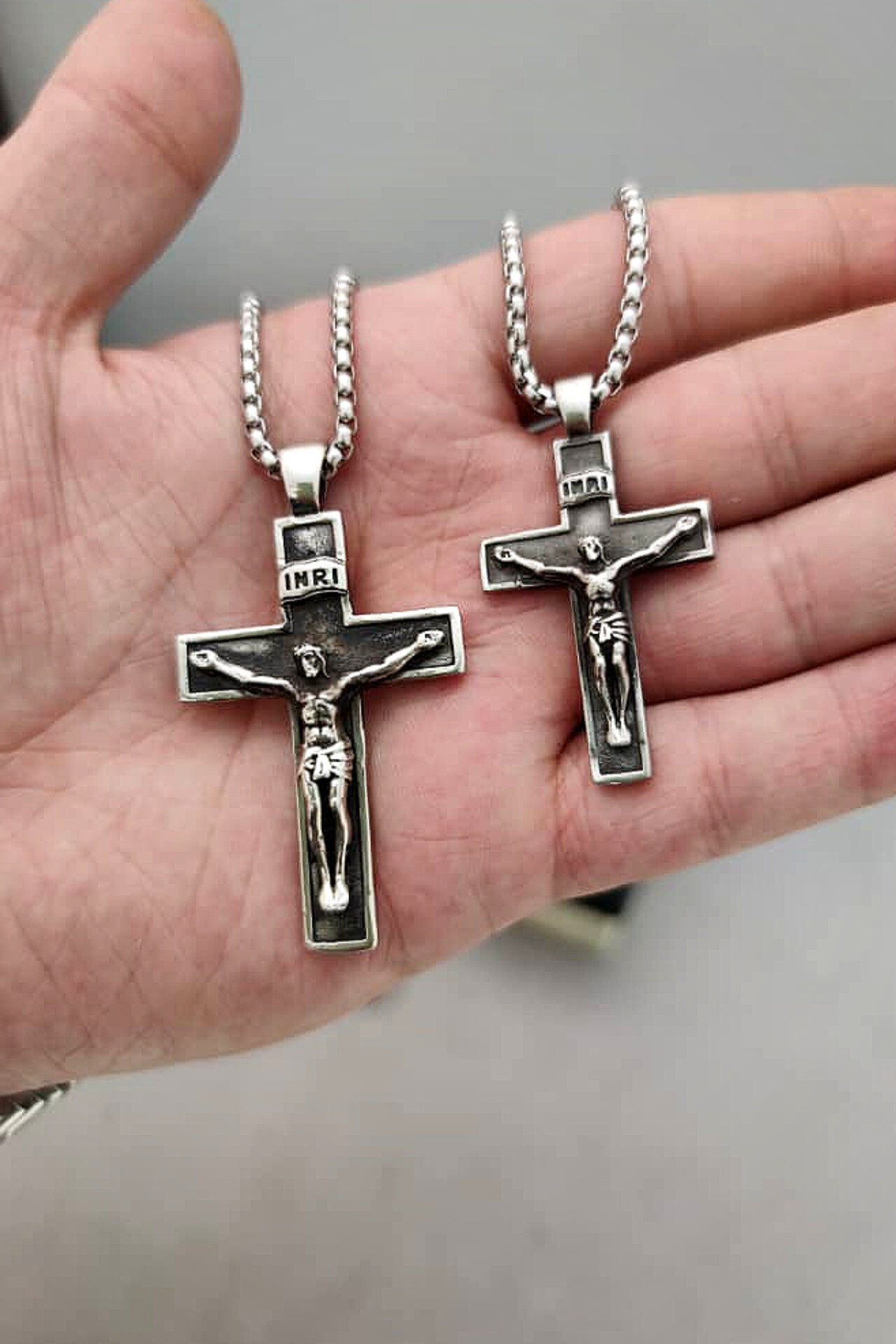 گردنبند صلیب استیل رنگ ثابت در دو سایز کوچیک و بزرگ کیفیت و جزییات بسیار دقیق جز کارای خاص و جذاب طول زنجیر ۶۰ سانت